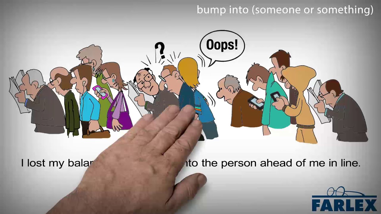 - I am sorry for bumping into you -- somebody shoved me. 对不起,撞到了您, 有人挤我.
