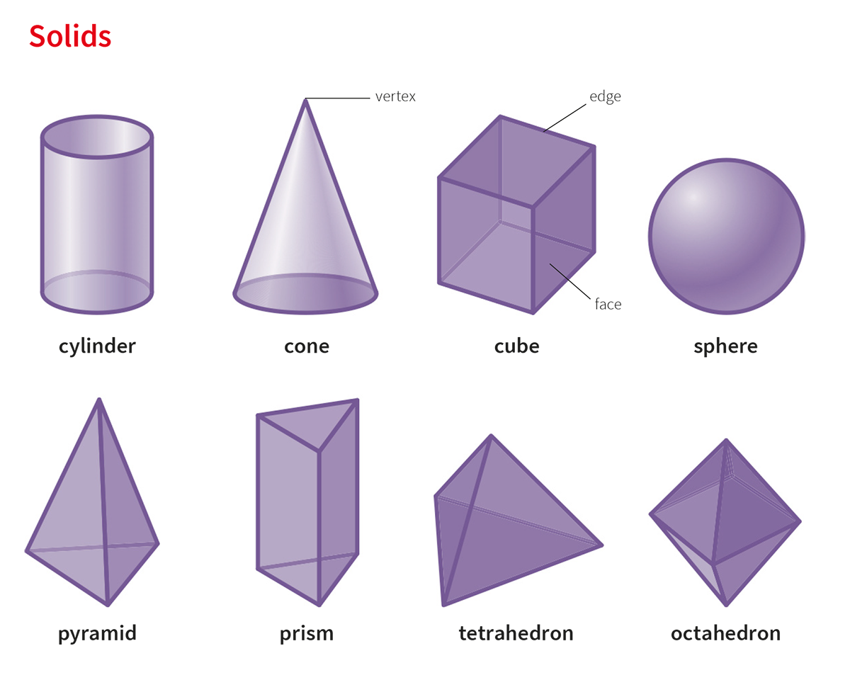 | rectangular prism (n.) 长方体 | A rectangular prism looks like a box. 长方体看起来像一个盒子。 |
