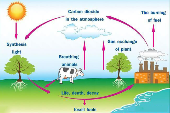 - Humans take in oxygen and breathe out carbon dioxide. 人吸入氧气,呼出二氧化碳。
