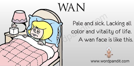 🇬🇧/wɒn/ 🇺🇸/wɑːn/📚 5929 1托福If you describe someone as wan, you mean that they look pale and tired. 面带倦容的